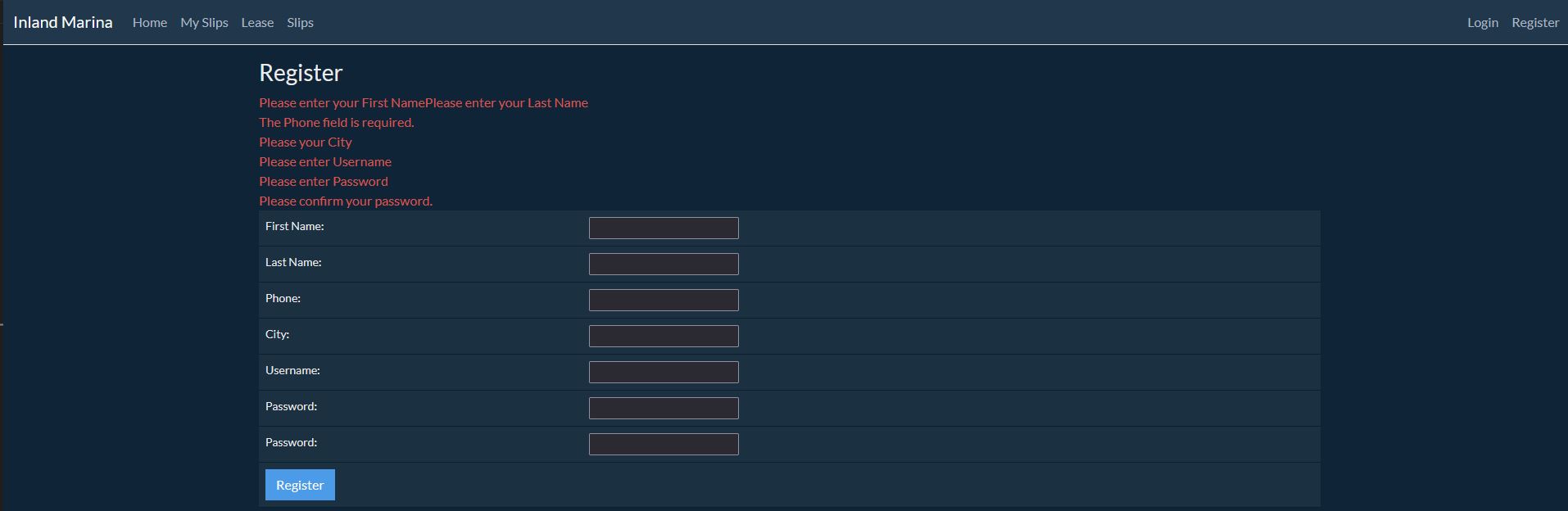 A Web App that lets new clients register and existing clients book and view a Marina dock space for the year, all information is pulled from a SQL database and any edits or addiotns made will be reflected in the database.